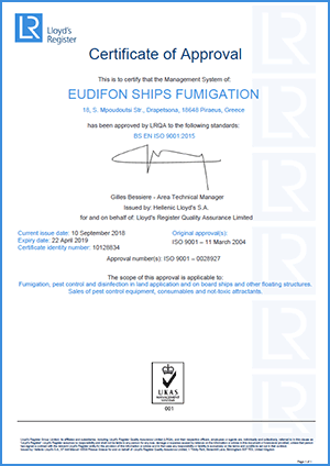 to the highest point and has succeeded to become the first company of disinfection and pest control services in Greece to be I.S.O.-9002 certified.